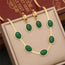 The Emerald Necklace Earrings Bracelet set exudes elegance and sophistication, capturing the timeless allure of nature's most exquisite gemstone. Crafted with meticulous attention to detail, each piece showcases the mesmerizing beauty of emeralds in a harmonious blend of style and luxury. The earrings feature brilliant emeralds, delicately encased in gleaming settings that accentuate their rich green hue. With a design that gracefully cascades from the earlobes, these earrings effortlessly catch the light, casting a captivating glow that illuminates the wearer's visage. Complementing the earrings, the bracelet boasts a symphony of emerald gems intricately arranged along a polished chain, creating a mesmerizing tapestry of color and sparkle. Each emerald is carefully selected for its exceptional clarity and intensity, ensuring a stunning display of radiance with every movement. Together, the Emerald Necklace Earrings Bracelet set forms a cohesive ensemble that epitomizes sophistication and grace. Whether worn individually to add a touch of glamour to everyday attire or as a complete set for special occasions, these exquisite pieces are sure to leave a lasting impression, making them cherished treasures for generations to come.
