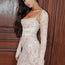 Crafted with meticulous attention to detail, the dress features a delicate lace overlay that exudes grace and femininity. The intricate floral patterns cascade gracefully, creating an ethereal aesthetic that captivates with every movement. The maxi length adds a touch of drama, ensuring you make a statement wherever the evening takes you. The drawstring waist of the dress not only enhances your silhouette but also provides a customizable fit, allowing you to tailor the dress to your unique shape.